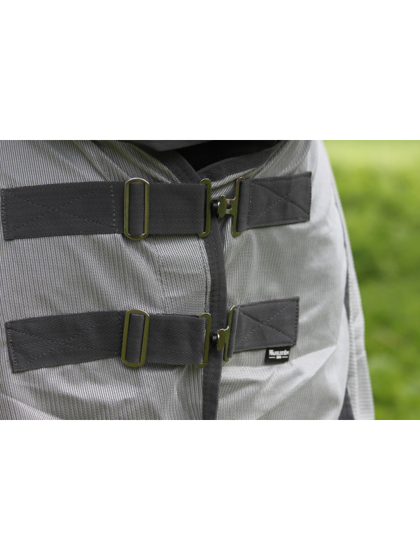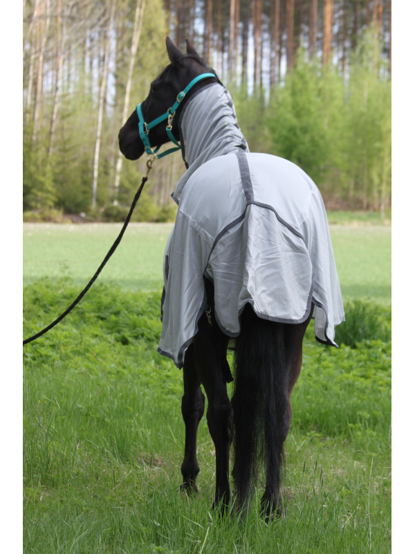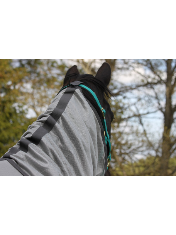 Helehalli värvi täiskaelaga kärbsetekk, mis on valmistatud vastupidavast võrkmaterjalist ning aitab kaitsta hobust putukate ja päikese eest.