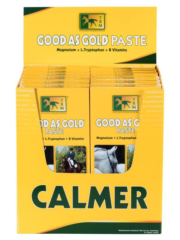 GOOD AS GOLD Paste on mugav täiendsööt hobustele, mis aitab vähendada stressireaktsioone ja toetab hobuse rahulikku käitumist pingelistes olukordades, nagu transport, võistlused või intensiivne treening. Magneesiumi, L-trüptofaani ja B-grupi vitamiinide kombinatsioon toetab närvisüsteemi normaalset talitlust ning aitab hobusel paremini lõõgastuda.